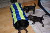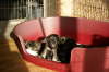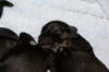 Kleiner Hinweis: Die weißen Flecken auf dem Rücken oder Pfötchen der Welpen sind Markierungen und dienen zur einfacheren Identifizierung der Welpen, sind also kein Farbfehler.